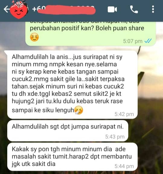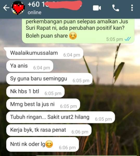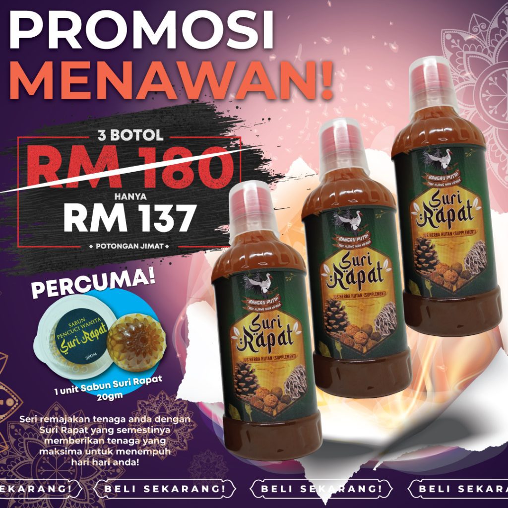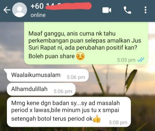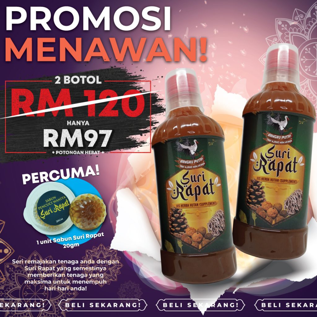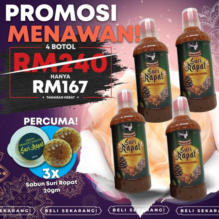 Jus Suri Rapat disediakan secara tradisional dan dimasak sendiri. DIJAMIN selamat dan TIADA bahan terlarang atau bahaya. Bagi memastikannya, Jus Suri Rapat telah di buat Lab Test dan terbukti TIADA bahan-bahan bahaya.